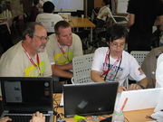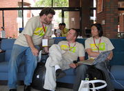 360 KB | Wikimania 2007, The registration crew, photo by John Stanton |